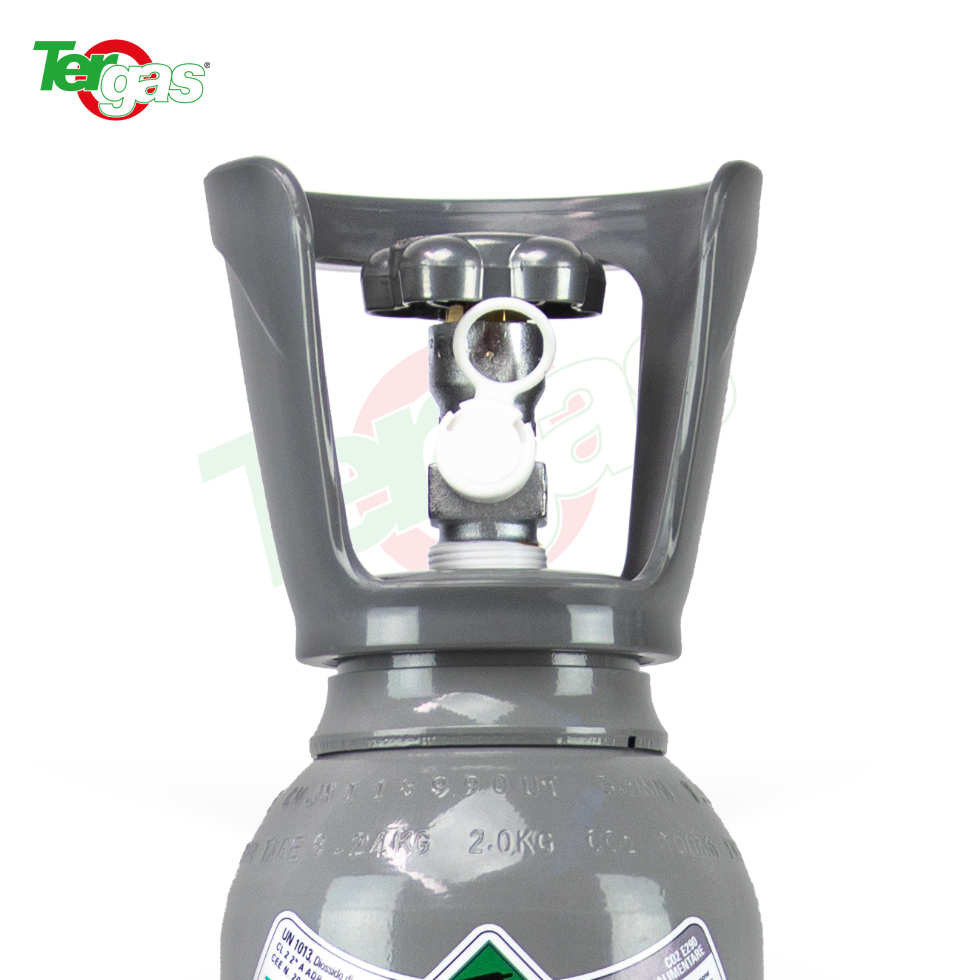 Bombola ricaricabile CO2 Alimentare (Anidride Carbonica) da 2 chilogrammi (2,67 litri), nuova, conforme alla normativa 99/36/EC (T-PED) con punzonatura e collaudo secondo le normative vigenti.